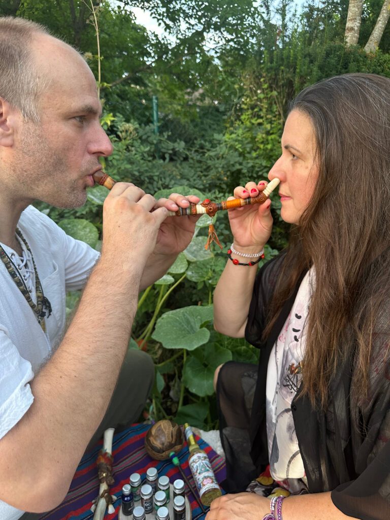 Wir eröffnen und halten einen sowohl hoch energetischen als auch gut geerdeten Raum und begleiten Dich durch Deinen Prozess mit der Wirkung des heilige Rapé in Deinem Körper und Geist.